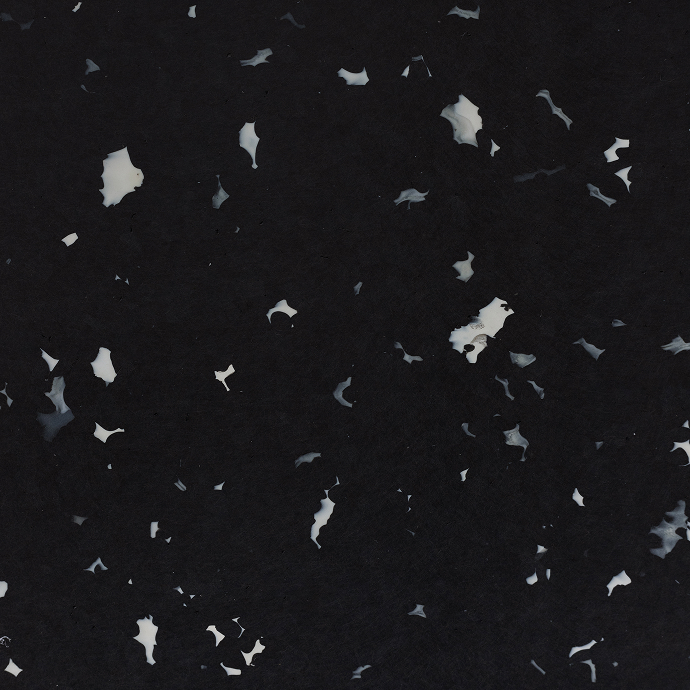 Reconnaissable à sa teinte profonde et intemporelle, le coloris Soft Black 002 s’intègre harmonieusement à tous types de projets. Il est composé à 100 % de déchets plastiques en polystyrène. Sa base noire provient à 50% du recyclage de portes de réfrigérateurs et à 50% de nos chutes de production, tandis que ses fragments transparents sont issus de boîtes de Pétri recyclées.